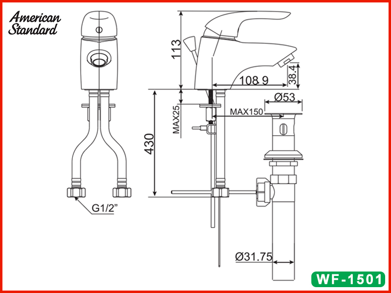 Bản vẽ kỹ thuật vòi lavabo nóng lạnh American Standard WF-1501