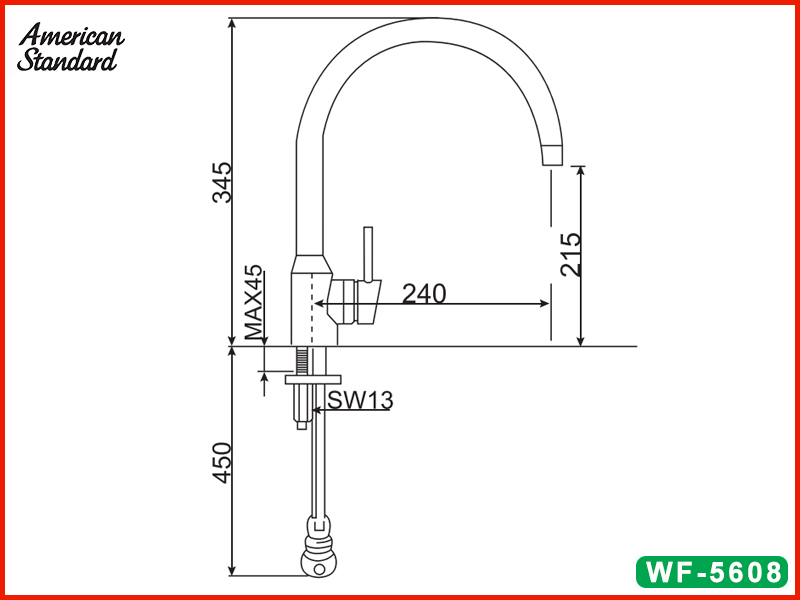 Bản vẽ kỹ thuật vòi rửa bát cổ cong American Standard WF-5608