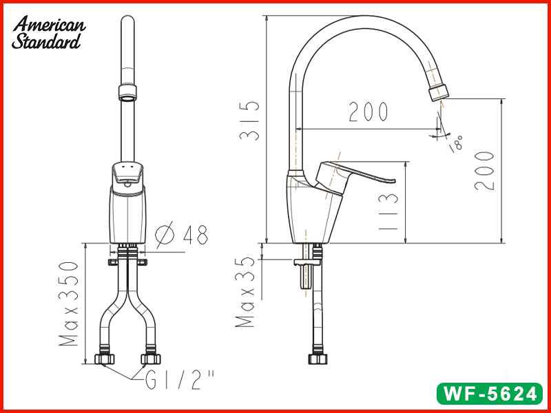 Bản vẽ kỹ thuật vòi rửa bát American Standard WF-5624