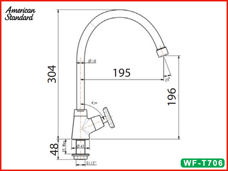 Bản vẽ kỹ thuật vòi rửa bát lạnh American Standard WF-T706
