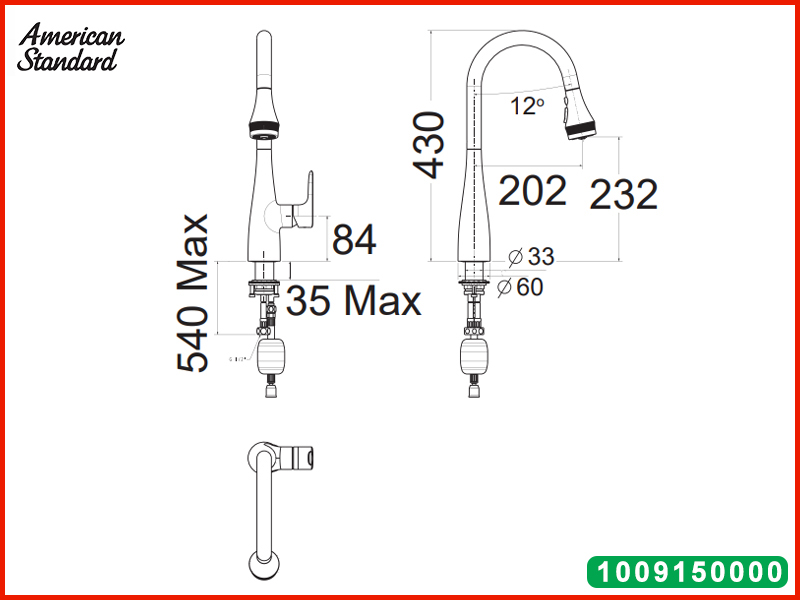 Bản vẽ kỹ thuật vòi rửa bát dây rút American Standard 1009150000