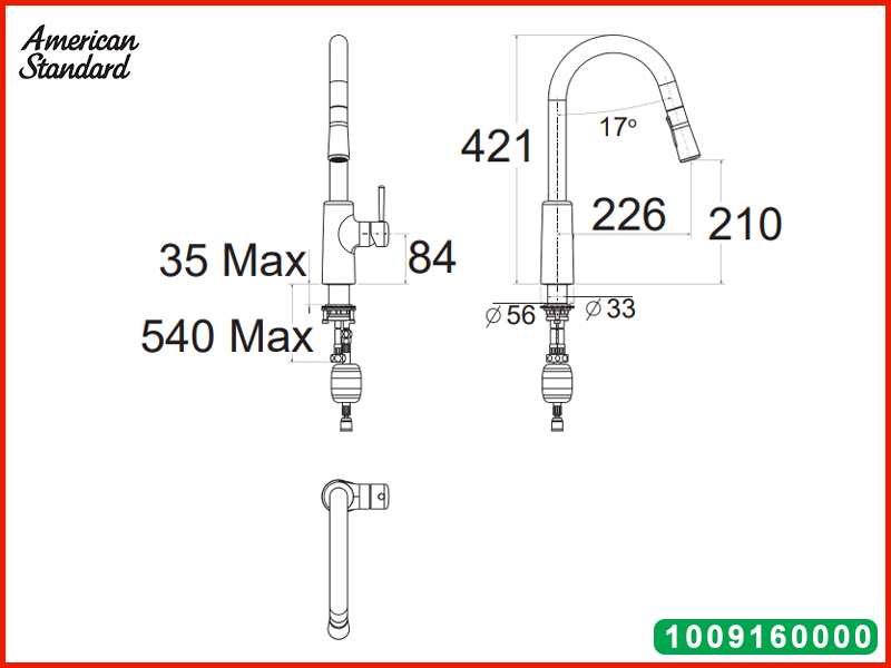 Bản vẽ kỹ thuật vòi rửa bát dây rút American Standard 1009160000